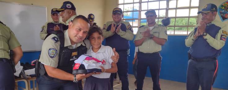En esta oportunidad, el Comisario Jefe Rigmar Borjas Contreras, director de PoliLagunillas y una comisión de funcionarios policiales beneficiaron a 17 niños de la escuela rural “Silencio Norte” con la entrega de uniformes escolares, luego de un estudio minucioso que ayudó a determinar las necesidades de los pequeños.