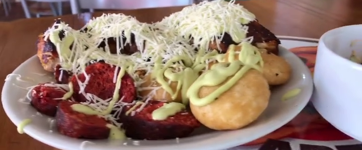 Pero, además, con un contorno que incluye arepita y ensalada; además ofrecen chorizo y queso como parte de las adiciones.