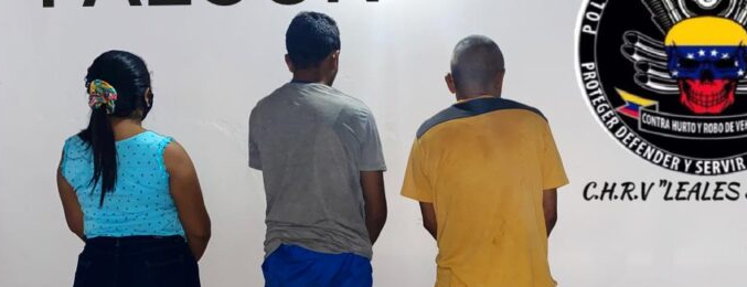 Fueron detenidos en la calle Churuguara entre Millar y Proyecto de Coro, capital del estado Falcón. Se trata de un hombre conocido como «el Mocho» de 29 años de edad; una mujer de 33 y otro sujeto conocido como «Yeyo».
