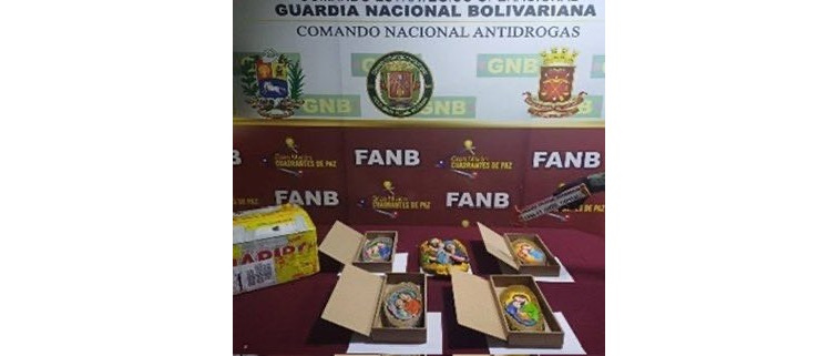 Efectivos de la Fuerza Armada Nacional Bolivariana incautaron piezas religiosas impregnadas con presunta droga en una encomienda hacia Guatemala.