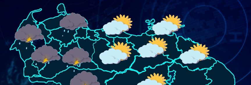 En tal sentido, de acuerdo al INAMEH, habrá cielo poco nublado; y mantos nubosos con núcleos convectivos aislados, asociados a lluvias de intensidad variable y actividad eléctrica al sur de la Guayana Esequiba, sur de Bolívar, Amazonas, Apure, Lara, Falcón, los Andes y sur del Zulia.