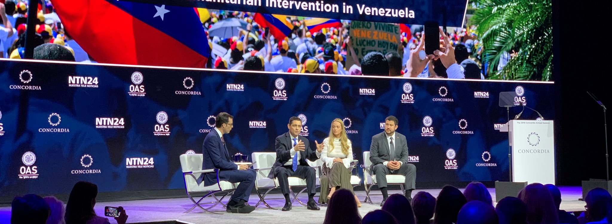 Lilian Tintori afirmó hoy en @ConcordiaSummit NY que su fundación “Rescate Venezuela” recibía asistencia de grupos irregulares y paramilitares para distribuir ayuda humanitaria en Venezuela. Tintori ha aclarado que su afirmación se debió a su manejo imperfecto del inglés.
