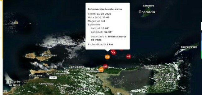Igualmente, la entidad sísmica reportó que el fenómeno ocurrió específicamente a 30 kilómetros (Km) del norte de Irapa y a 36 Km al noroeste de Guiria, tuvo una profundidad de 3.3 Km.