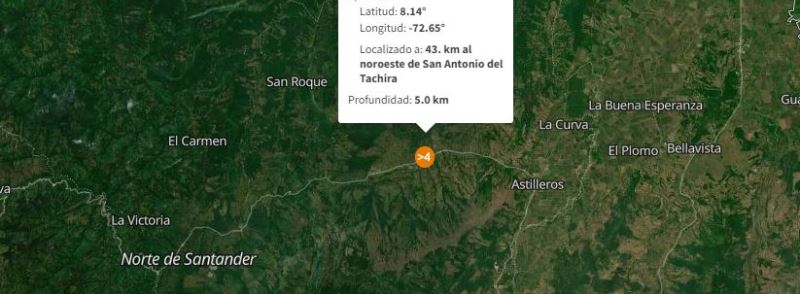 De acuerdo con Funvisis el sismo ocurrió a las 7:09 de la noche y se localizó a 43 kilómetros de San Antonio del Táchira y a 46 kilómetros al oeste de la Fría.