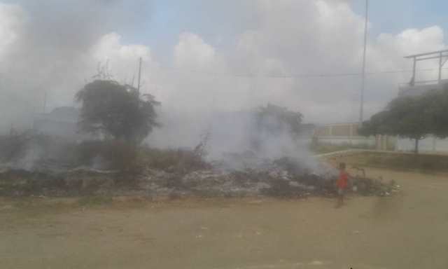 Agobiados por la quema de basura viven los habitantes de la parroquia El Mene del municipio Santa Rita y de manera particular los habitantes de la Calle Belén ante la constante quema de basura que se ejecuta en el estacionamiento ubicado al frente del estadio Pedro García.