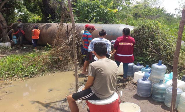 Desde la parroquia Germán Ríos Linares, pasando por la San Benito, Rómulo Betancourt, La Rosa, Jorge Hernández, Punta Gorda, Carmen Herrera, Ambrosio y hasta la zona rural de Arístides Calvani se puede observar la necesidad que tiene la población; la cual amanece pegada a la tubería, donde solo sale aire y arena, mientras que otros vecinos se lanzan a las principales avenidas de la ciudad con sus pipas, tobos y tanque a esperar o “montar cacería “ a los camiones cisternas para poder abastecerse del vital líquido.