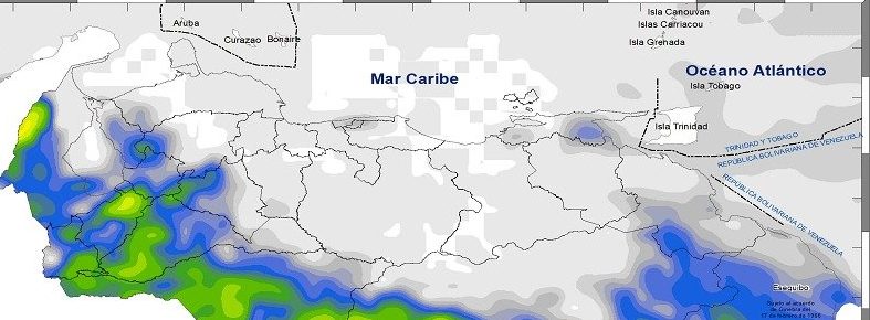 De igual manera, mediante la cuenta en la red social Twitter del @INAMEH, se informó que, por efectos de la convergencia intertropical, reforzada por líneas de inestabilidad atmosférica sobre el extremo oriental del país, se refuerzan los mantos nubosos con precipitaciones, algunas con actividad tormentosa en áreas del Zulia, Los Andes, Lara, Portuguesa, Barinas, Apure, Amazonas, Bolívar, Sucre, Delta Amacuro y la Guayana Esequiba.