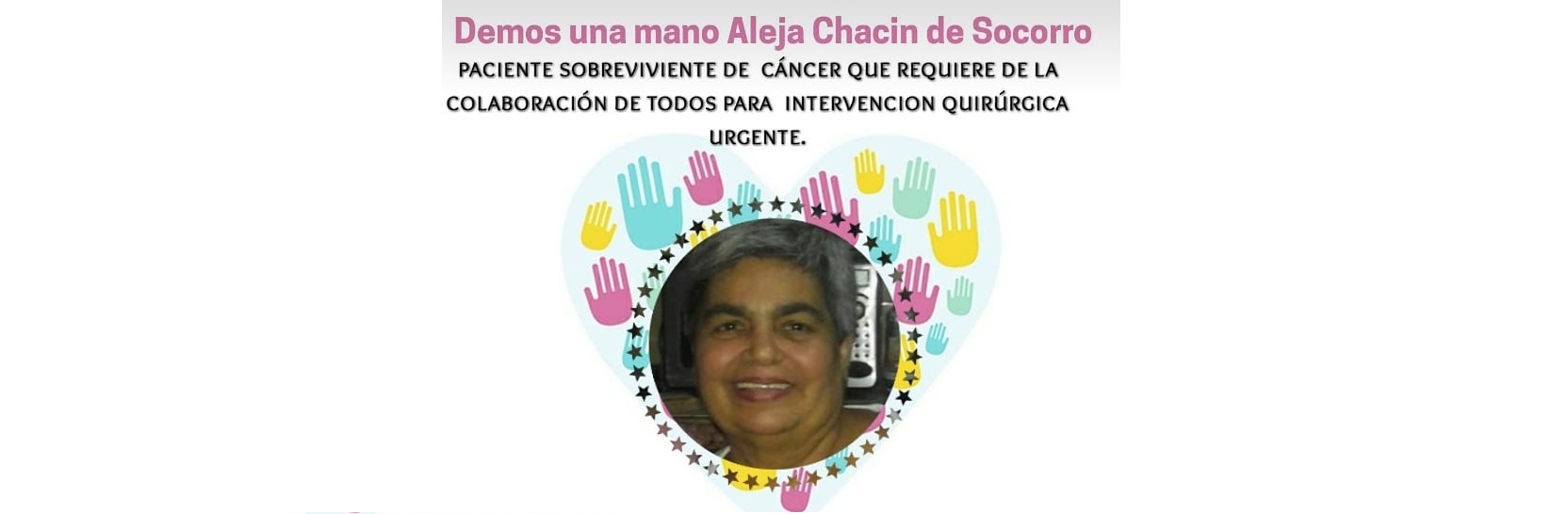 Es por ello que la familia Chacín Socorro recurre a tu ayuda para unirte en la campaña por Aleja Chacín de Socorro. Todas las personas de bien que deseen contribuir pueden hacerlo y aportar en la lucha por una vida apreciada y querida.