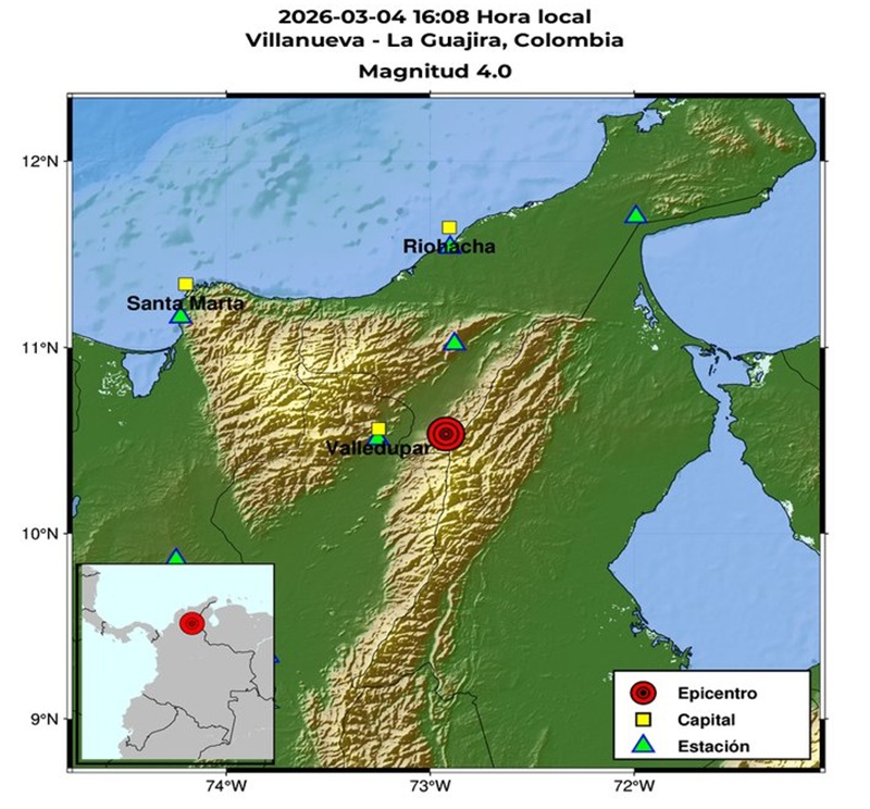 Un sismo de magnitud 4.0 registrado la tarde de este miércoles 4 de marzo en el departamento de La Guajira, Colombia, fue percibido de forma leve por habitantes de Maracaibo, capital del estado Zulia.