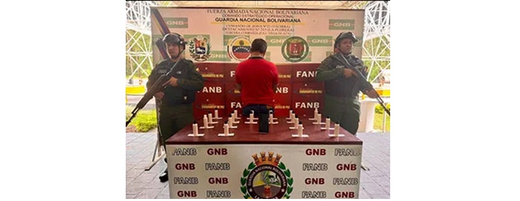 Funcionarios de la Guardia Nacional Bolivariana, en el Punto de Atención de Vega de Aza, detuvieron a un ciudadano con 20 recipientes plásticos, contentivos de cocaína líquida.