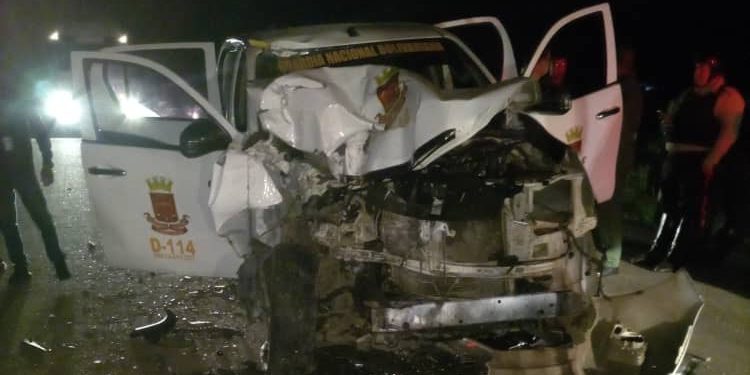 Una colisión de una unidad móvil perteneciente al Destacamento D-114 Machiques de la Guardia Nacional Bolivariana (GNB) con cuatro ocupantes en su interior.