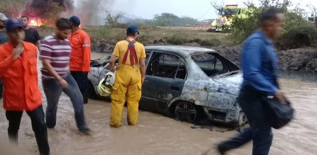 Un incendio en las inmediaciones de la refinería de Guanta, estado Anzoátegui, las llamas alcanzaron a un vehículo que iba con una familia, entre ellos, una niña