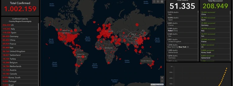 La cifra total de contagios por coronavirus en todo el mundo superó este jueves el millón de personas, según el sitio web de la universidad Johns Hopkins, que provee estadísticas en tiempo real en base a datos oficiales de los diferentes países.