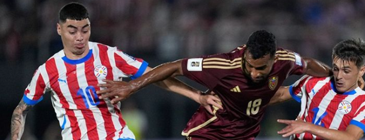 Los dirigidos por Fernando Batista tuvieron un gran primer tiempo, controlando el ataque paraguayo y generando ocasiones de peligro. Al minuto 25’, Yeferson Soteldo se sacó la marca de varios rivales, dejándole la pelota servida a Jon Aramburu para que rematara y la mandó a guardar para el 1-0 en favor de Venezuela.