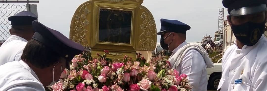 Arribando por el muelle de PDVSA, vieja Costa Bolívar, la réplica de la imagen de la Patrona del Estado Zulia, la Virgen de La Chinita llegó escoltada, como siempre, por sus servidores marianos.