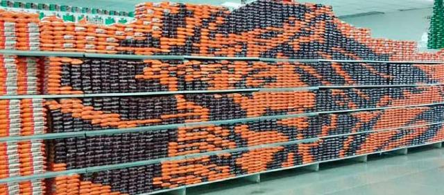 Usó para ello los empaques de arroz los que, distribuidos de manera artística, dan forma al rostro de Jesús de Nazareth. Pero no a cualquiera, sino al Nazareno.