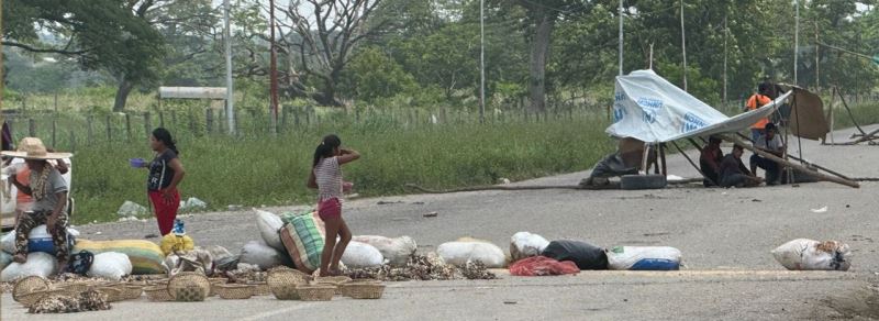 Este miércoles 15 de mayo, un grupo de indígenas yukpas tomaron la vía nacional Troncal 6, colocando carpas de tela, basura, palos y piedras a mitad de la vía.