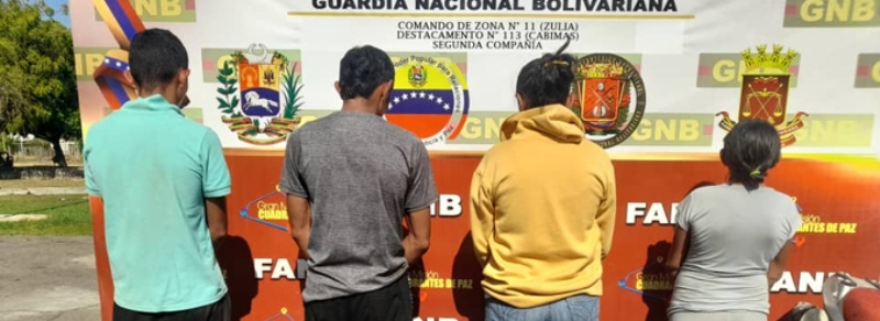 Funcionarios de la GNB adscritos al Destacamento 113 del Comando de Zona N° 11 Zulia en conjunto con efectivos pertenecientes del GAES-COL, efectuaron la aprehensión en flagrancia de 4 sujetos, por el delito de extorsión en el municipio Santa Rita del estado Zulia.