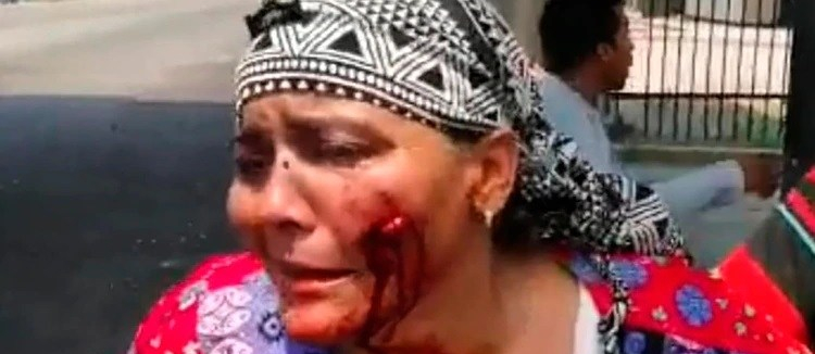 En un video que se divulgó en las redes sociales se la puede ver con un perdigonazo en la cara y llena de sangre desde el rostro hasta el pecho.