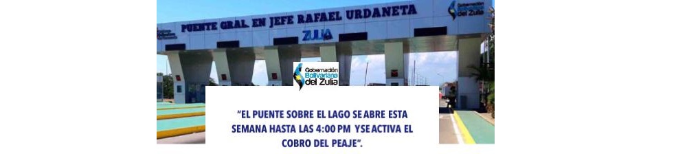 Además anunció que «el Puente sobre el Lago de Maracaibo se abre esta semana hasta las 4:00 pm y se activa el cobro del peaje».